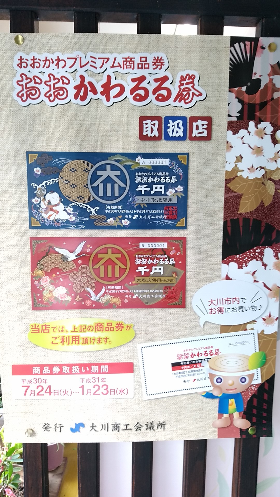おおかわプレミアム商品券「おおかわるる券」使えます